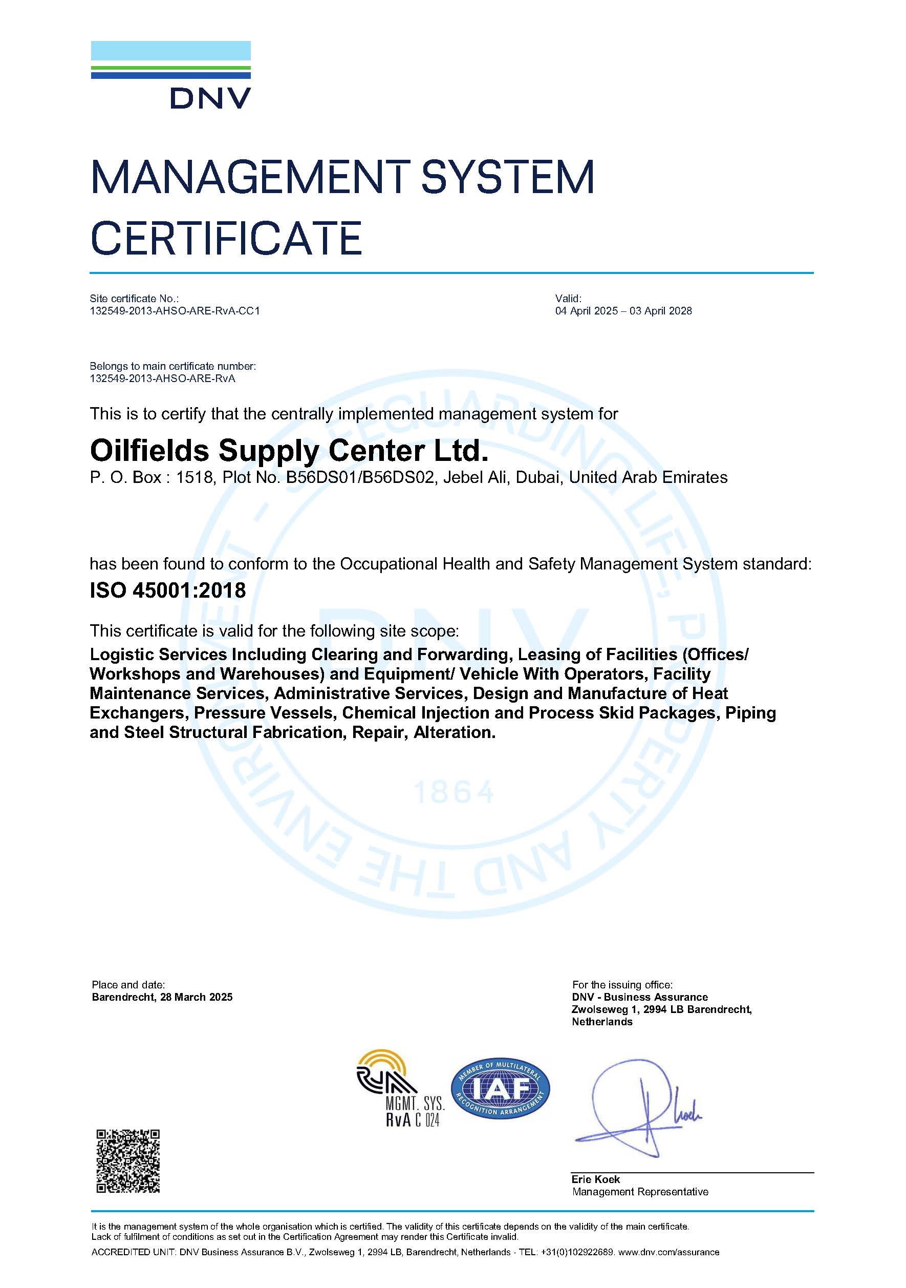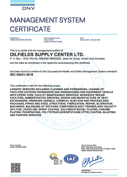 Occupational Health and Safety Management System – OSC Jebel Ali