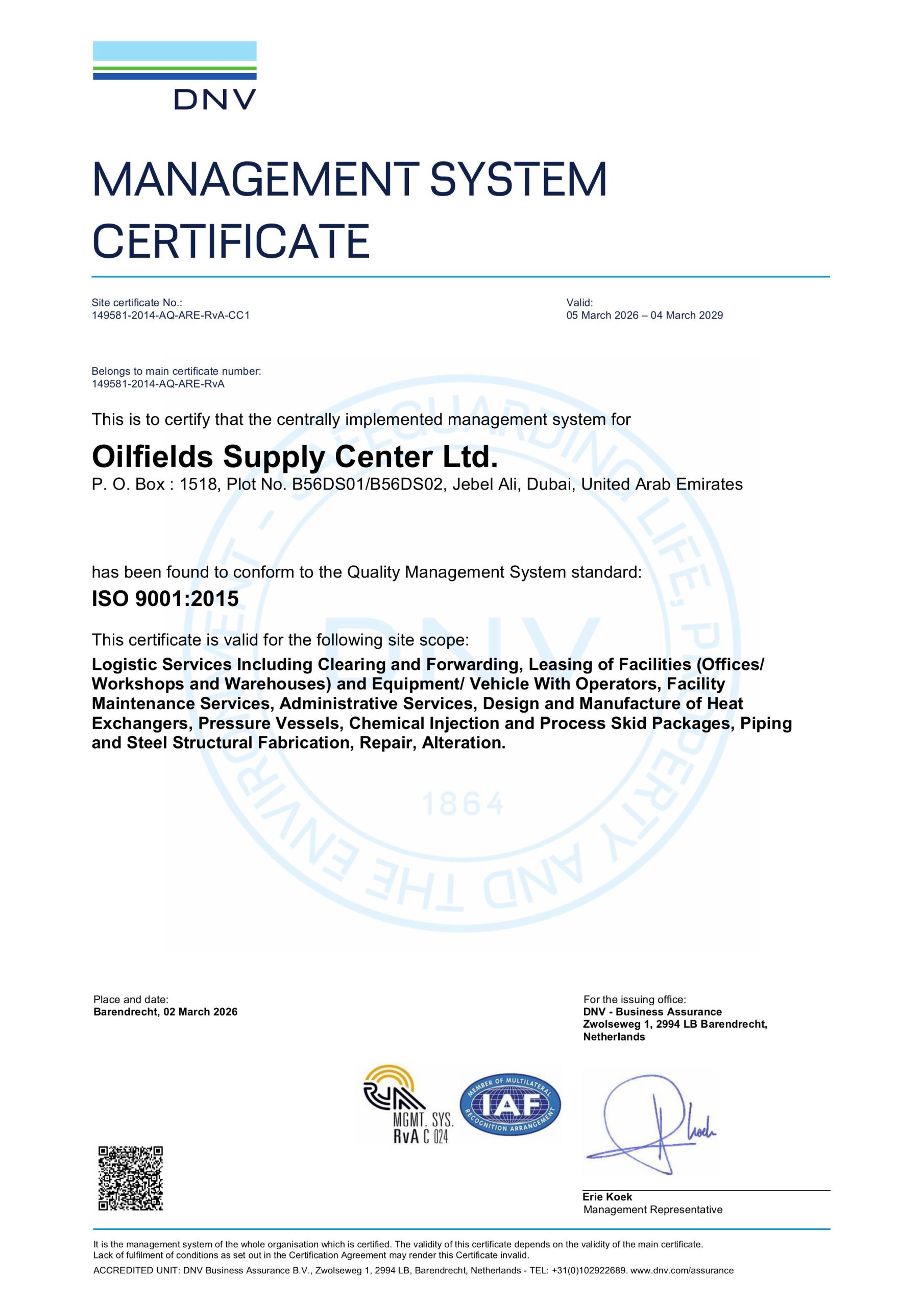 Quality Management System – OSC Abu Dhabi (KIZAD)
