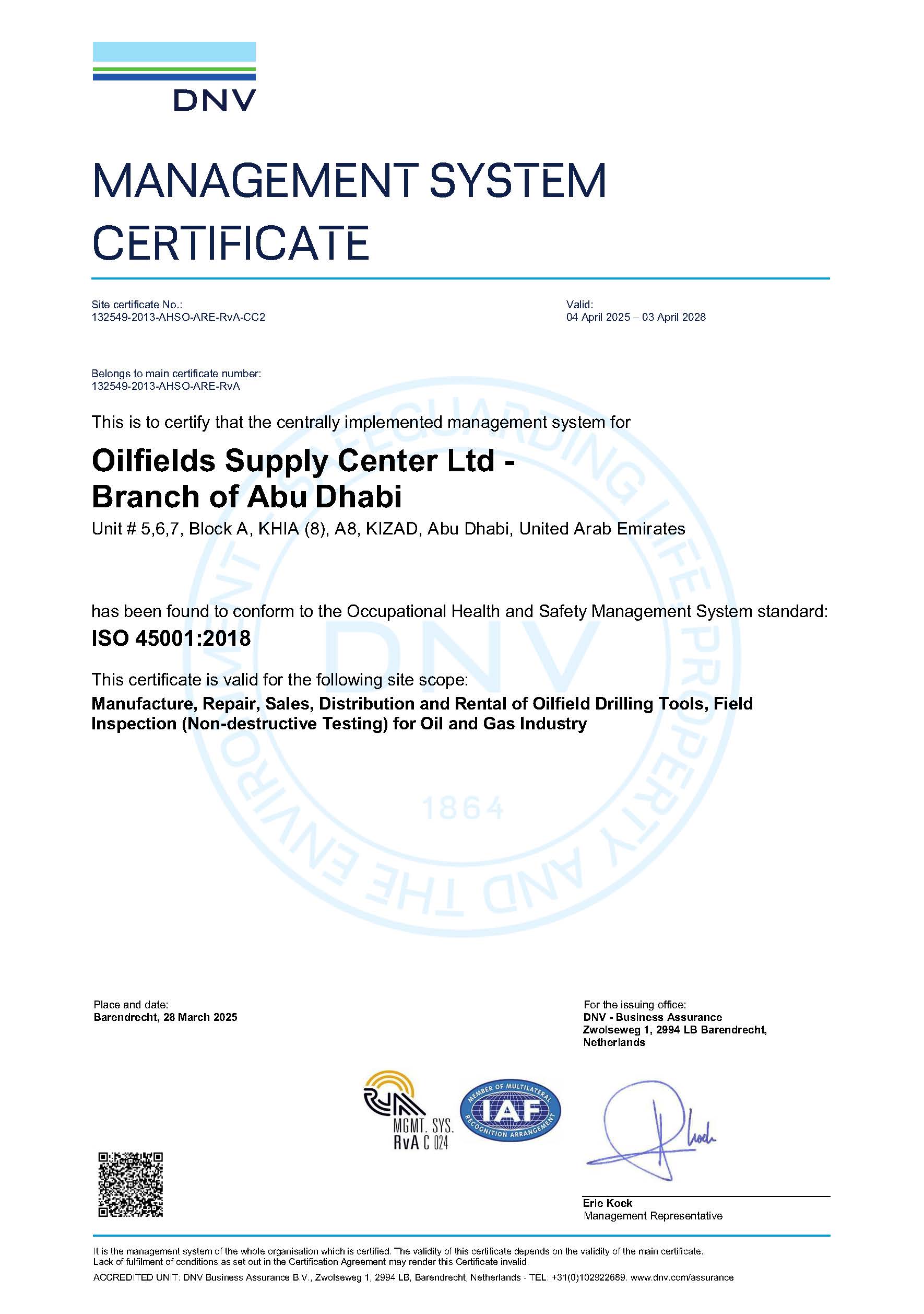 Occupational Health and Safety Management System – OSC Abu Dhabi (KIZAD)